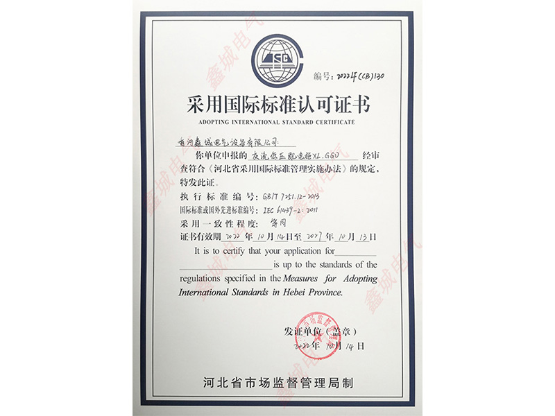 XL.GGD 采用國際標(biāo)準(zhǔn)認(rèn)可證書